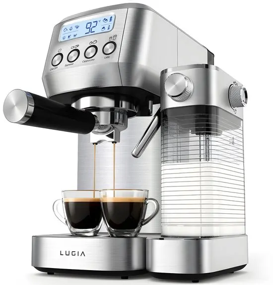 Lugia Pistonmachine 20 Bar - Koffiemachine met Automatische Melkopschuimer - Espressomachine - Led display - 20 bar - Ccappuccino, latte en macchiato - RVS Lugia