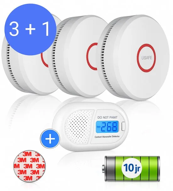 USAFEยฎ Rookmelder set van 3 en Koolmonoxidemelder - Rookmelders met 10 jaar batterij - CO2 melder en Brandmelder met Magneetmontage review